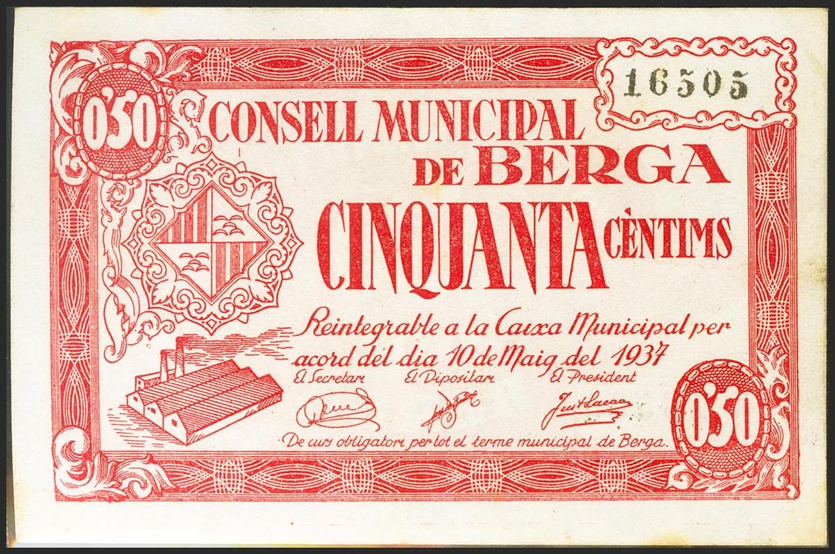 BERGA (BARCELONA). 50 Céntimos. 10 de Mayo de 1937. (González: 7037). EBC.