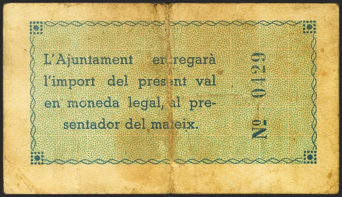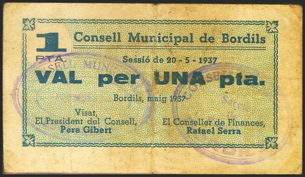 BORDILS (GERONA). 1 Peseta. 20 de Mayo de 1937. (González: 7137). MBC.