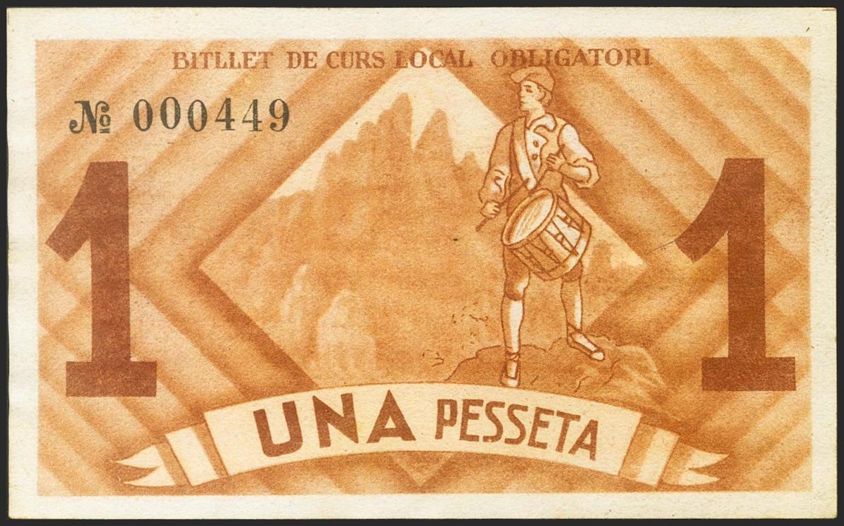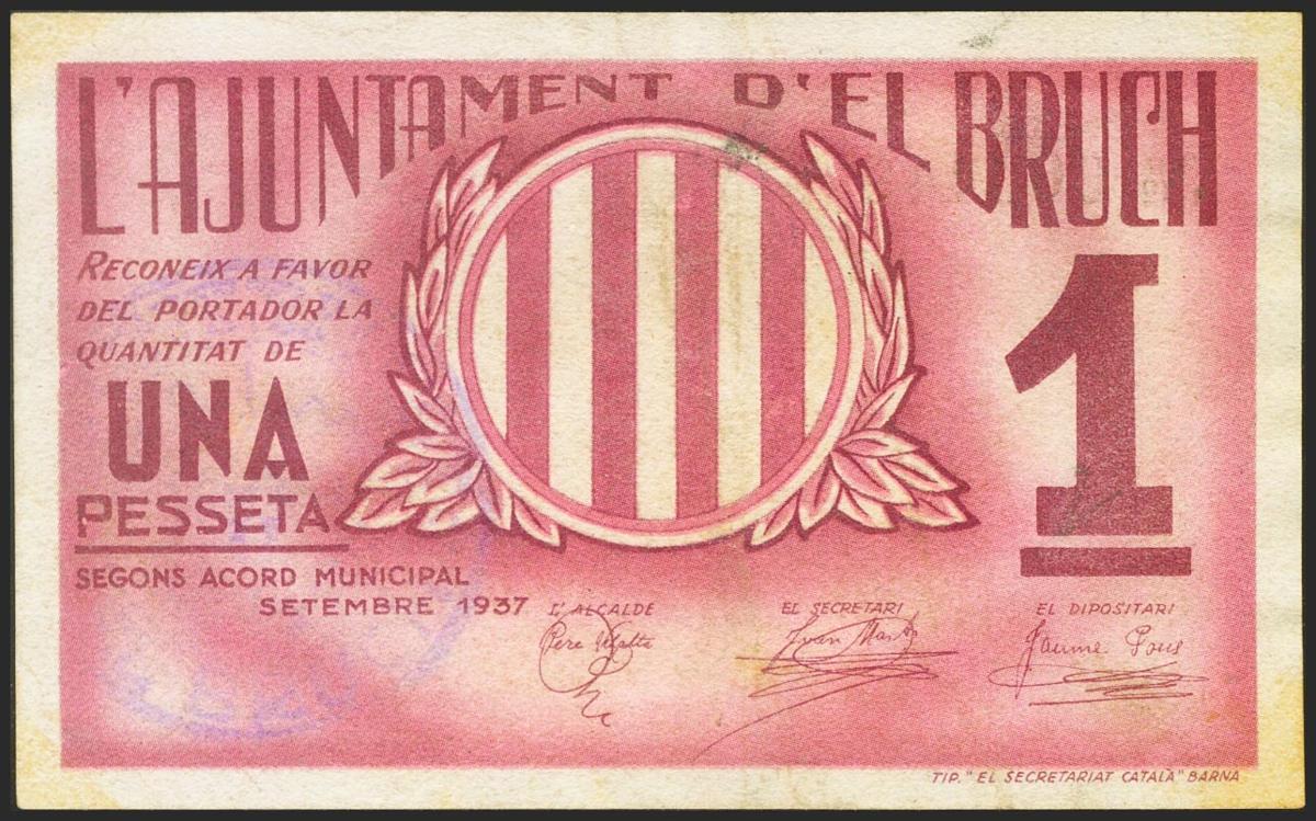 BRUCH (BARCELONA). 1 Peseta. Septiembre de 1937. (González: 7208). MBC.