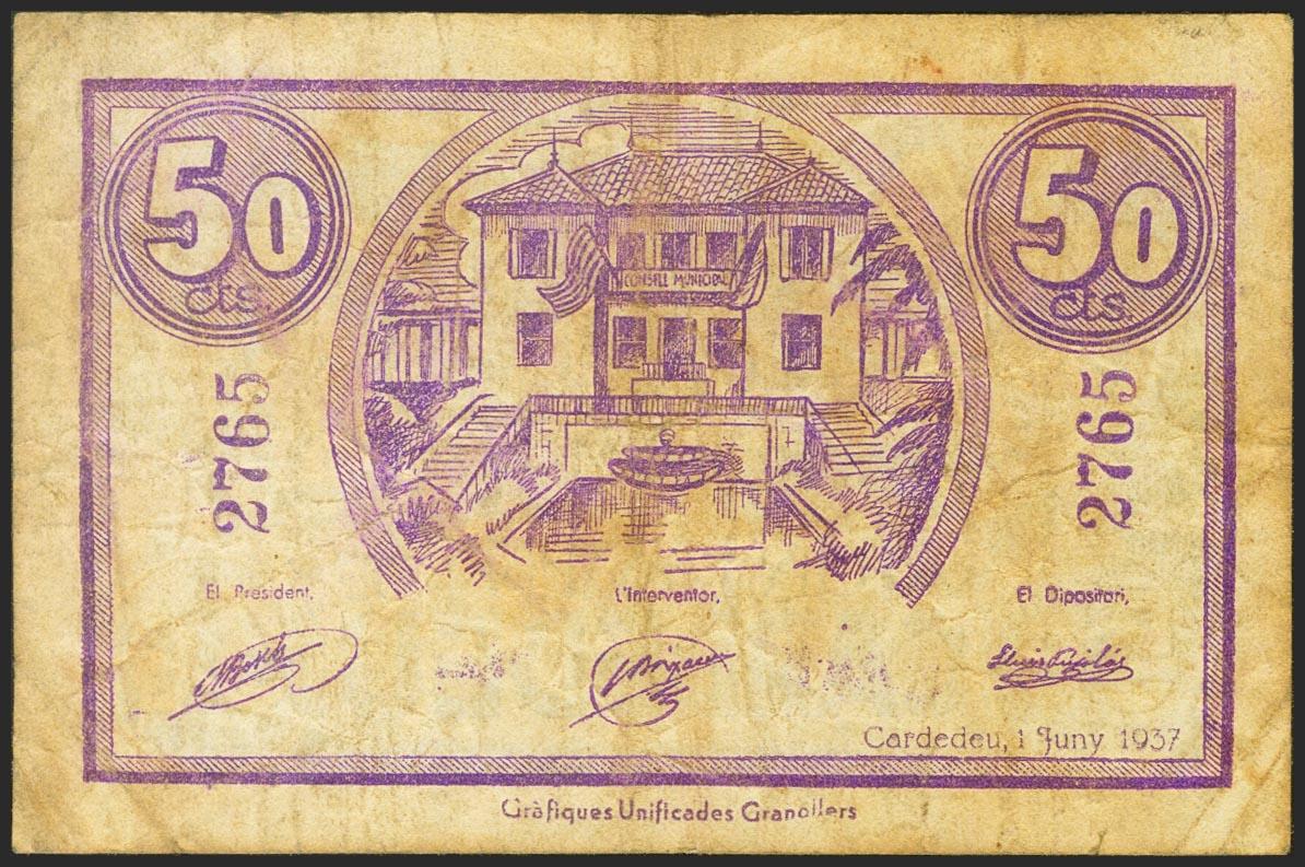 CARDEDEU (BARCELONA). 50 Céntimos. 1 de Junio de 1937. (González: 7386). BC.