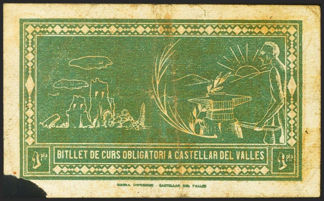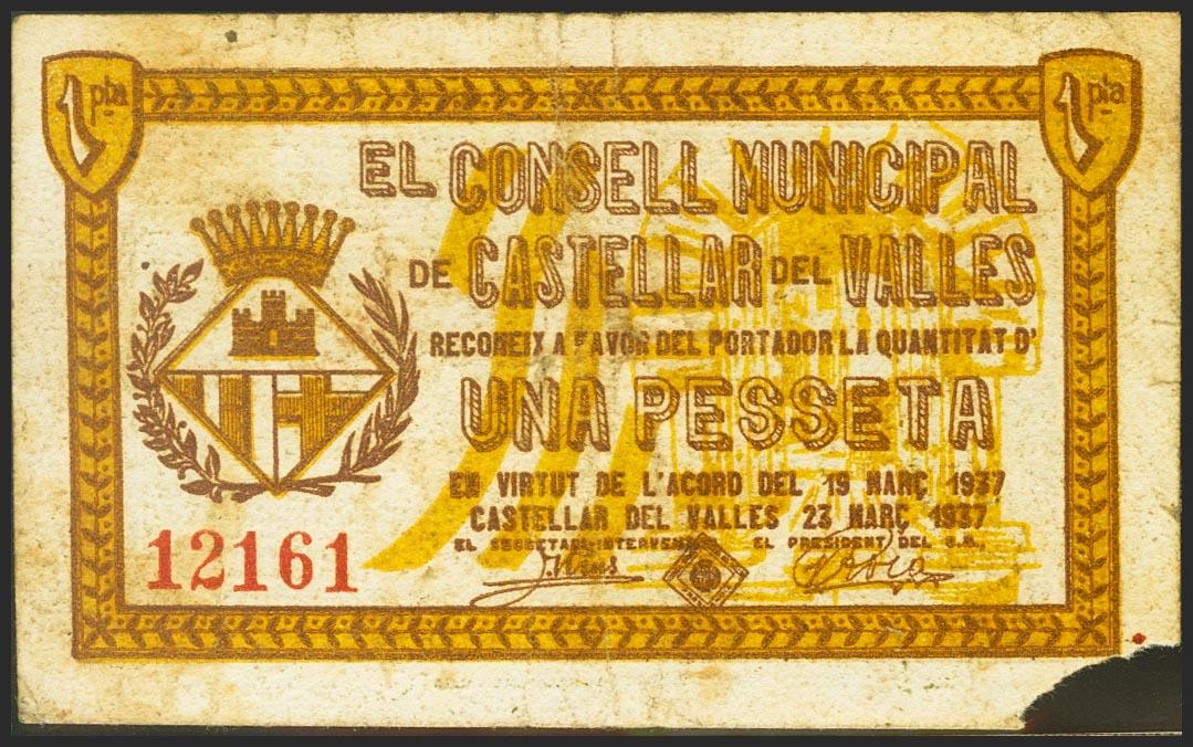 CASTELLAR DEL VALLES (BARCELONA). 1 Peseta. Marzo 1937. (González: 7421). RC.