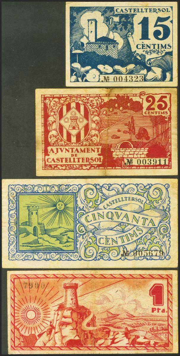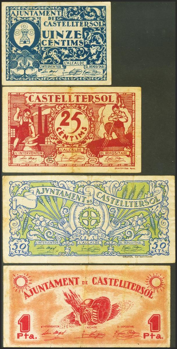CASTELLTERSOL (BARCELONA). 15 Céntimos, 25 Céntimos, 50 Céntimos y 1 Peseta. (González: 7509/12). Inusual serie completa. MBC+/MBC-.