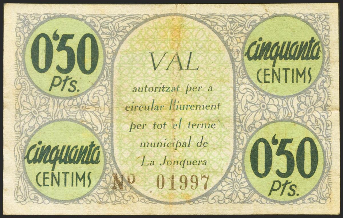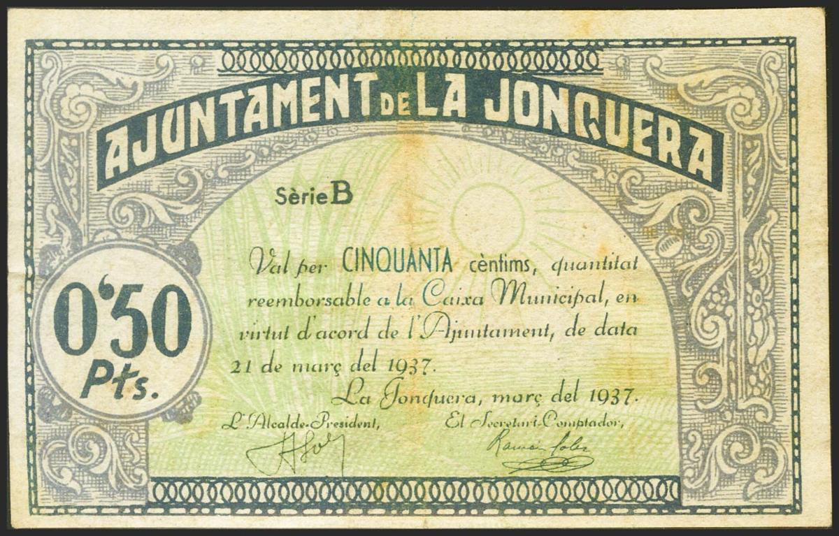 LA JUNQUERA (GERONA). 50 Céntimos. 21 de Marzo de 1937. Serie B. (González: 8276). MBC.