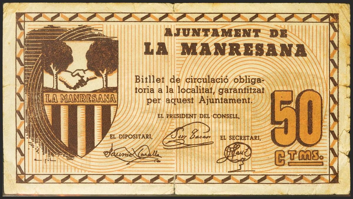 LA MANRESANA (BARCELONA). 50 Céntimos. (1936ca). (González: 8552). BC.