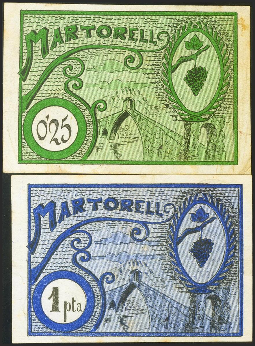 MARTORELL (BARCELONA). 25 Céntimos y 1 Peseta. 7 de Mayo de 1937. (González: 8580, 8582). MBC+.
