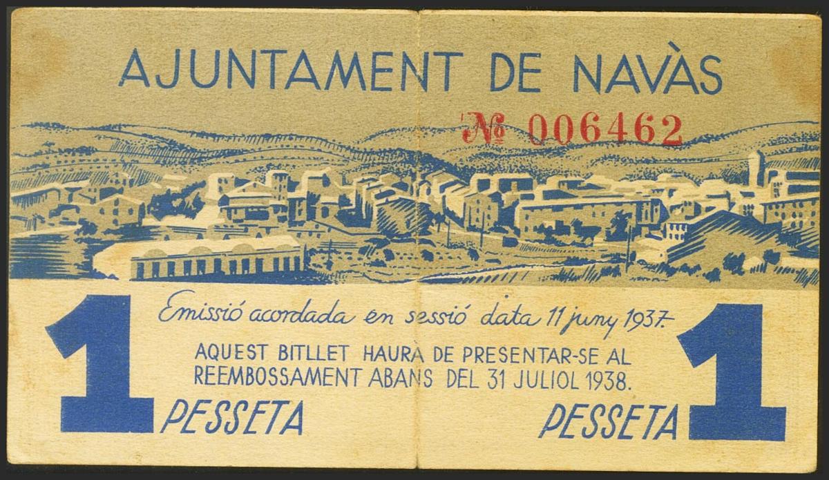 NAVAS (BARCELONA). 1 Peseta. 11 de Junio de 1937. (González: 8889). MBC.