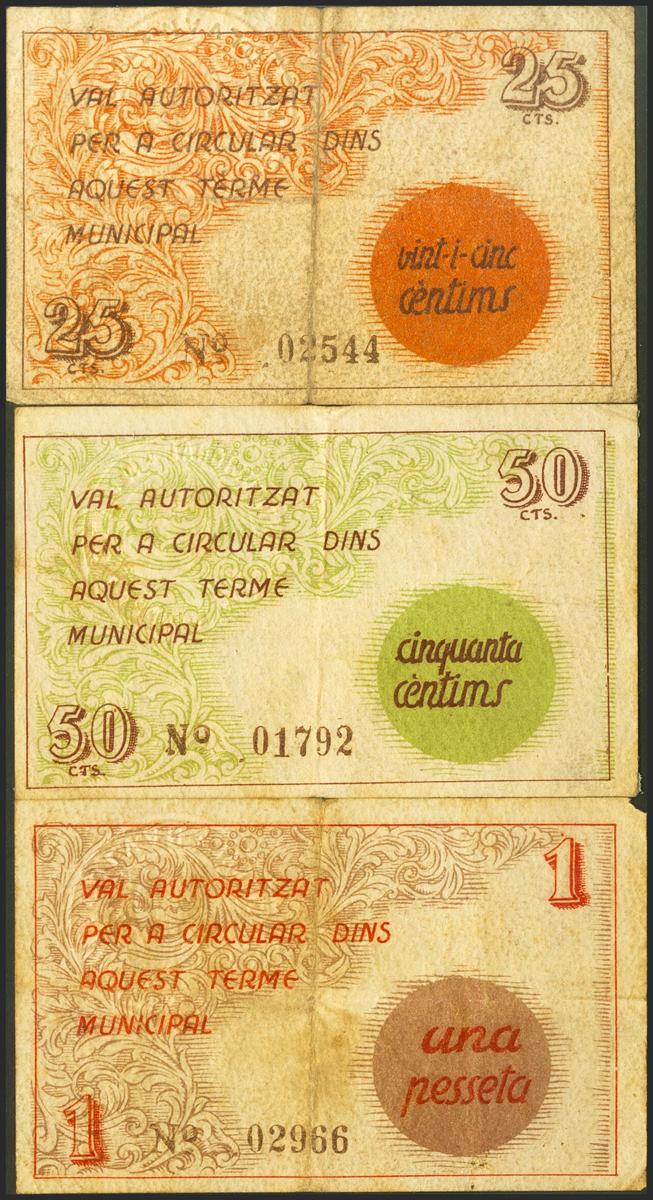 OLVAN (BARCELONA). 25 Céntimos, 50 Céntimos y 1 Peseta. (1936ca). (González: 9030/32). Inusual serie completa. MBC.