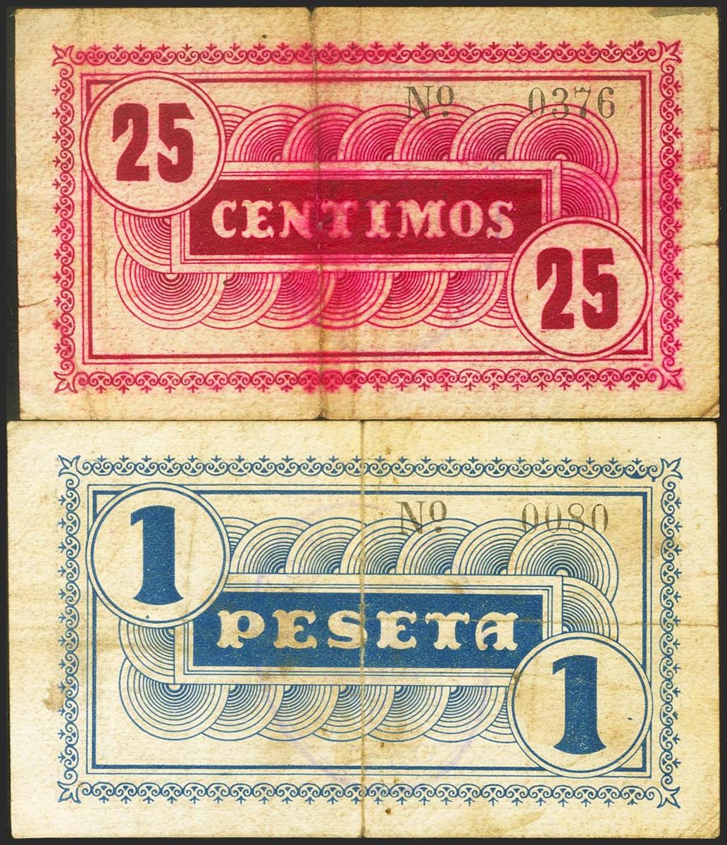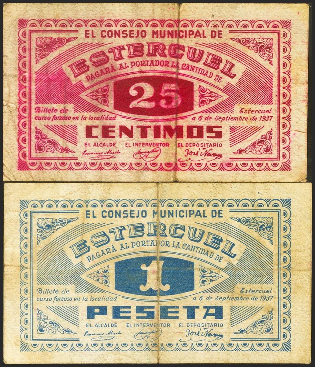 ESTERCUEL (TERUEL). 25 Céntimos y 1 Peseta. 6 de Septiembre de 1937. (González: 2362, 2363). MBC-.