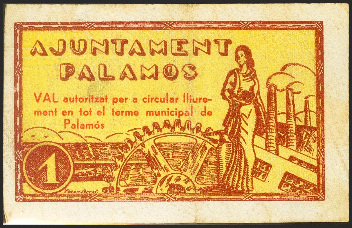 PALAMOS (GERONA). 1 Peseta. 11 de Mayo de 1937. Serie C. (González: 9098). Inusual. MBC.