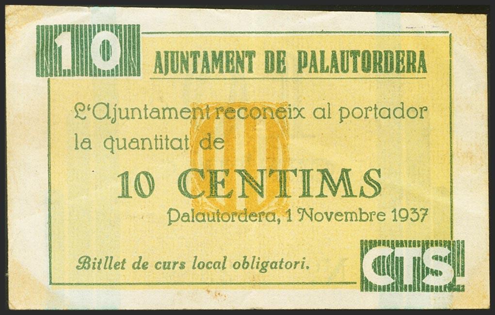 PALAUTORDERA (BARCELONA). 10 Céntimos. 1 de Noviembre de 1937. (González: 9132). Inusual. MBC+.