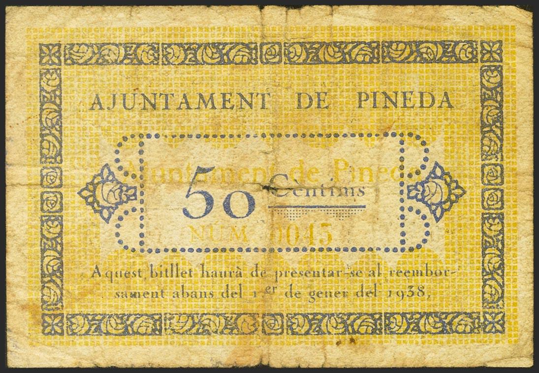 PINEDA (BARCELONA). 50 Céntimos. 17 de Junio de 1937. (González: 9216). Raro. MBC-.