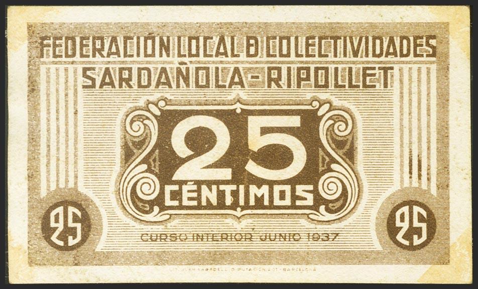 SARDAÑOLA (BARCELONA). 25 Céntimos. Junio 1937. (González: 9872). EBC.