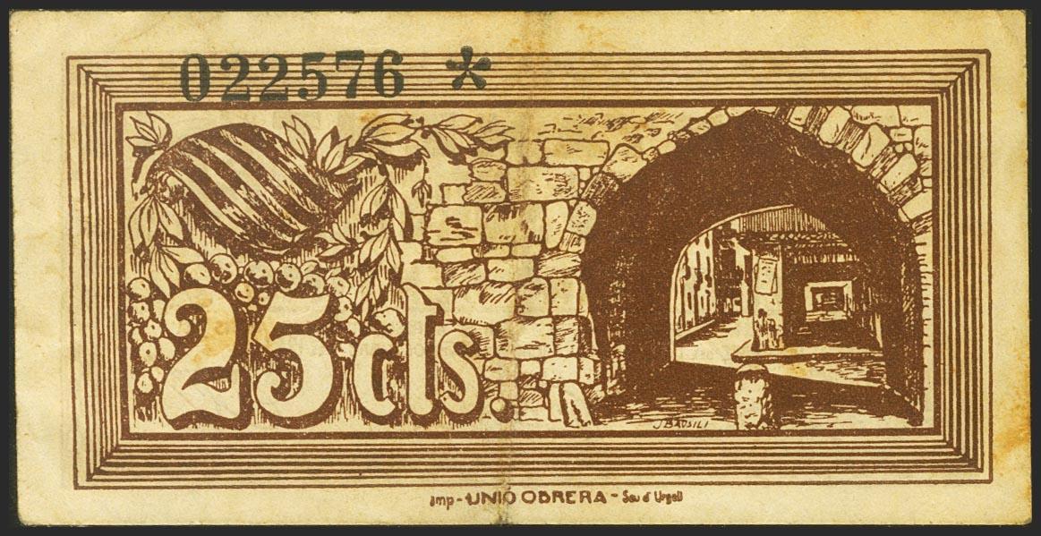 SEU D´URGELL (LERIDA). 25 Céntimos. 23 de Octubre de 1937. (González: 10000). MBC+.