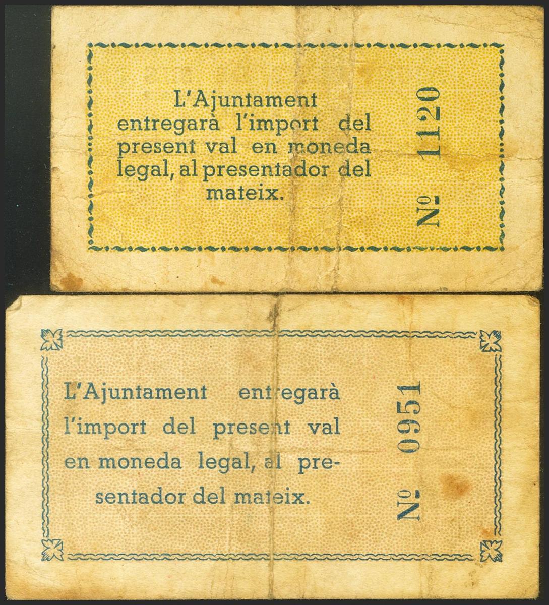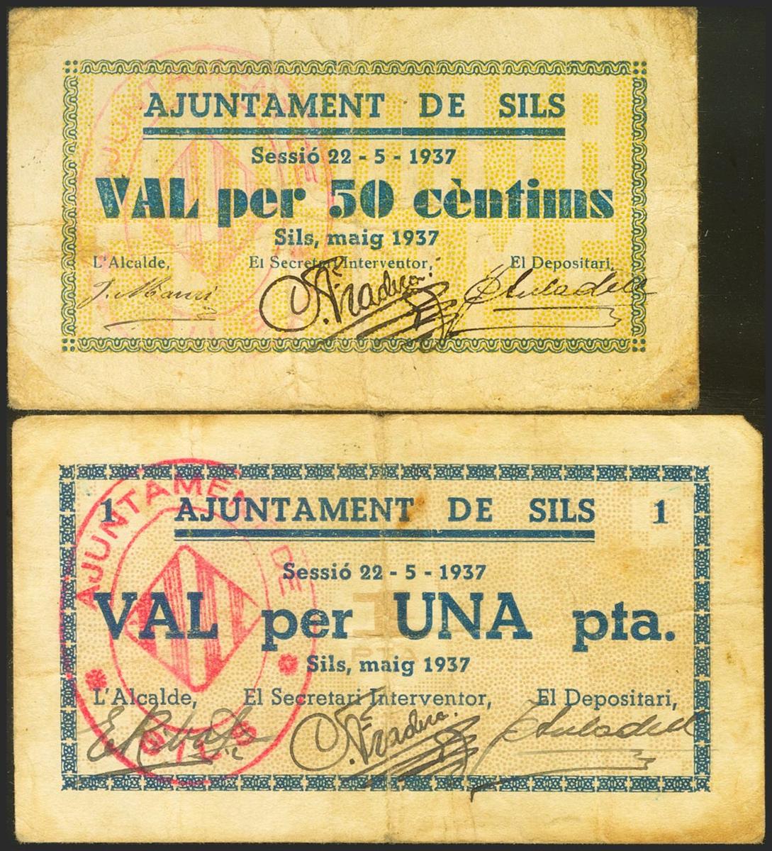 SILS (GERONA). 50 Céntimos y 1 Peseta. Mayo 1937. (González: 10011/12). Inusual serie completa. MBC.