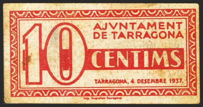 TARRAGONA. 10 Céntimos. 4 de Diciembre de 1937. Serie C. (González: 10088). MBC+.