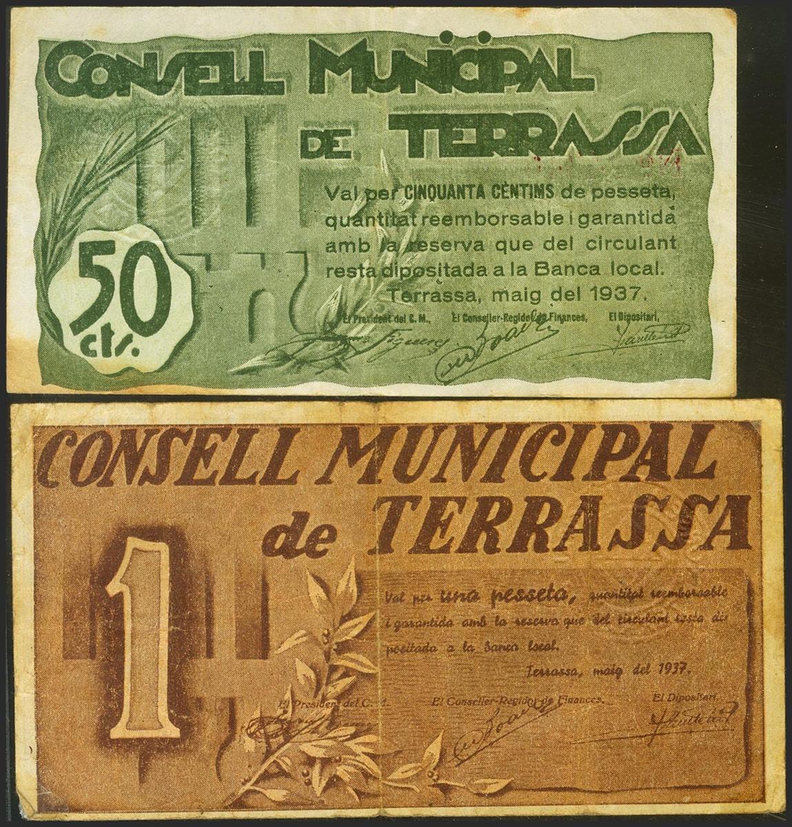 TARRASA (BARCELONA). 50 Céntimos y 1 Peseta. 21 de Mayo de 1937. (González: 10132/33). Serie completa. MBC+.