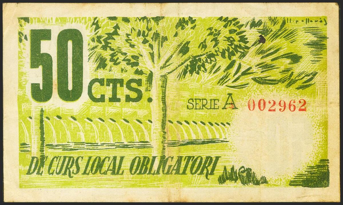 TORRELLLES DE FOIX (BARCELONA). 50 Céntimos. Junio 1937. (González: 10372). Inusual. MBC.