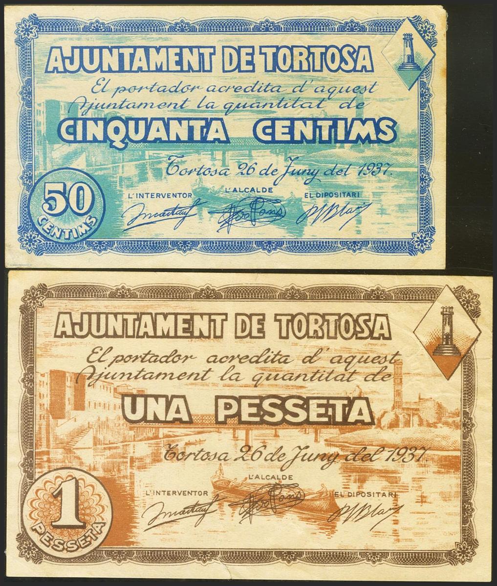 TORTOSA (TARRAGONA). 50 Céntimos y 1 Peseta. 20 de Junio de 1937. (González: 10408/09). Serie completa. MBC+/EBC.