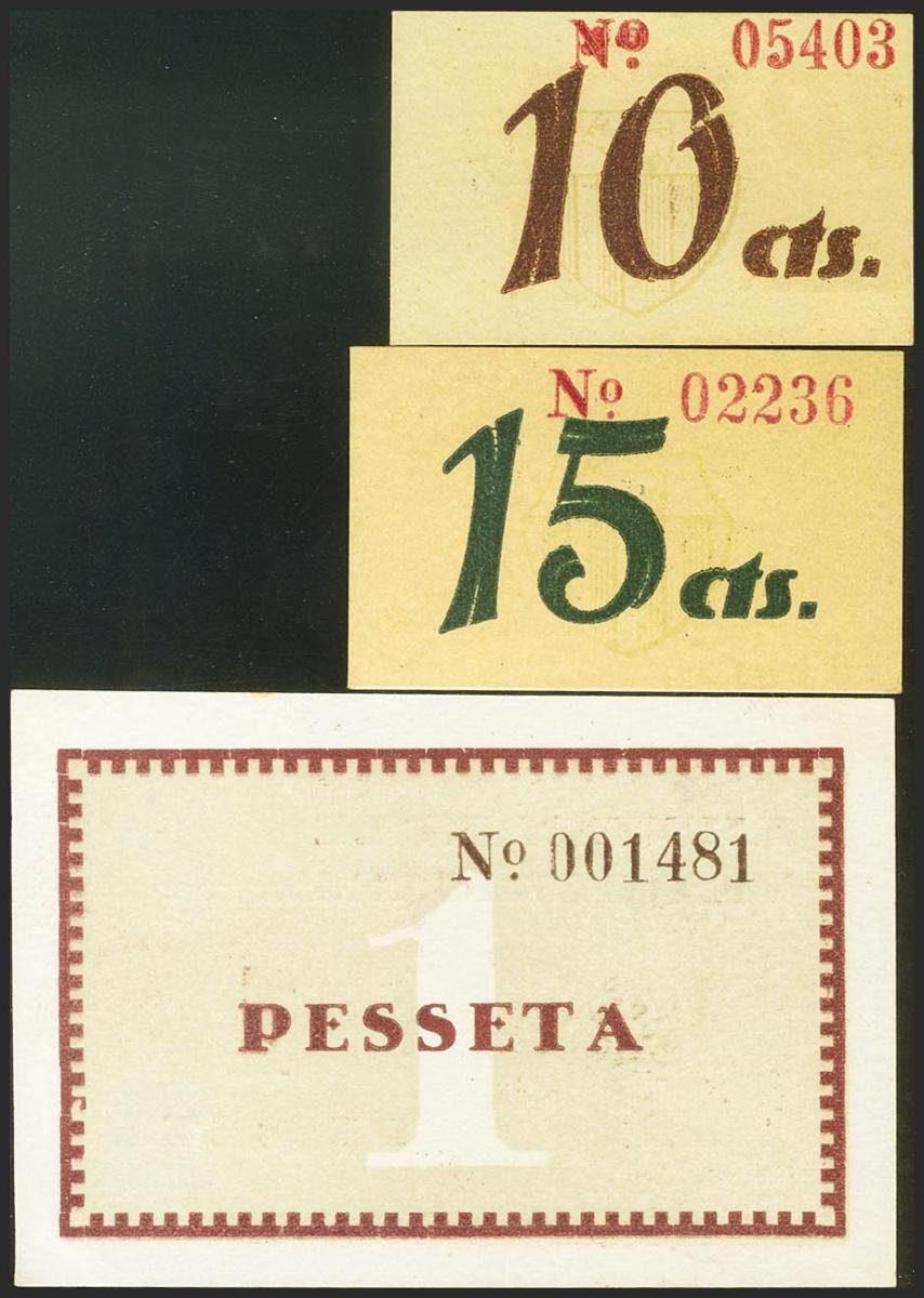 VACARISSES (BARCELONA). 10 Céntimos, 15 Céntimos y 1 Peseta. (1936ca). (González: 10474/76). Inusual serie completa. EBC+.