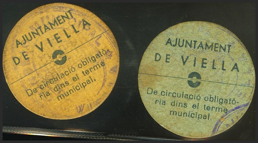 VIELLA (LERIDA). 25 Céntimos y 50 Céntimos. (1936ca). Series E y D, respectivamente. (González: 10659/60). Muy rara serie completa. EBC.