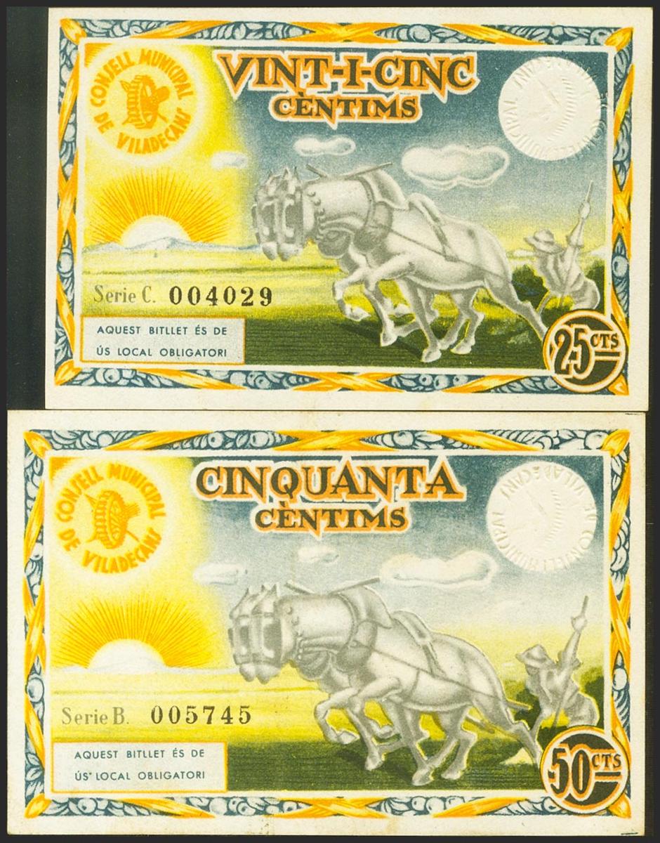 VILADECANS (BARCELONA). 25 Céntimos y 50 Céntimos. 14 de Mayo de 1937. Serie C y D, respectivamente. (González: 10686, 10687). EBC+/EBC.