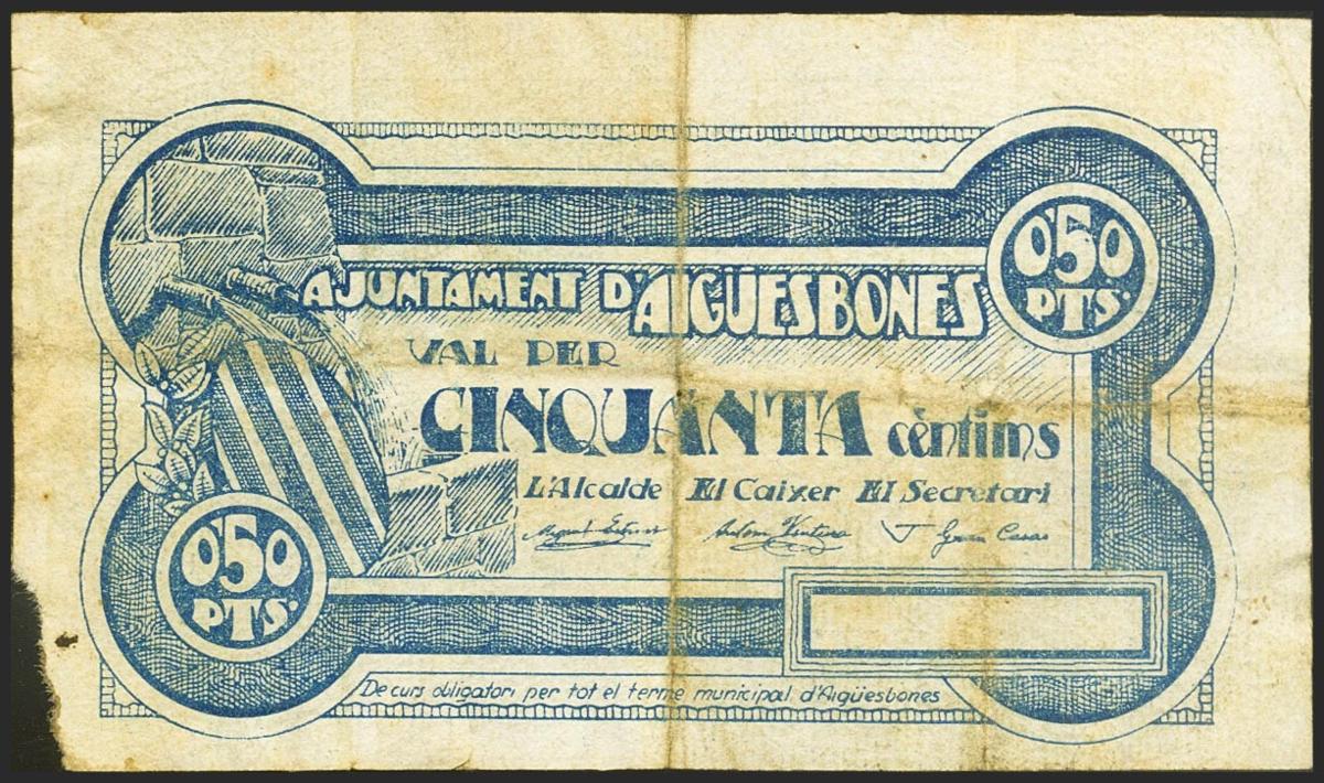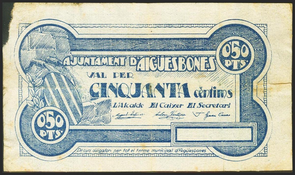 AIGUESBONES (BARCELONA). 50 Céntimos. (1936ca). Sin numeración. (González: 6047). RC.