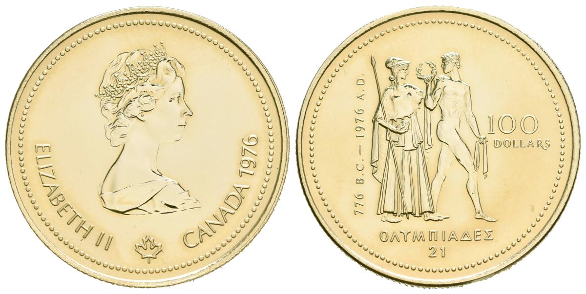 CANADA. 100 Dollars (Au-Ar. 13,38g/27mm). 1976. Juegos Olímpicos de Montreal. (Km#115). PROOF. Composición en oro 58,3%.