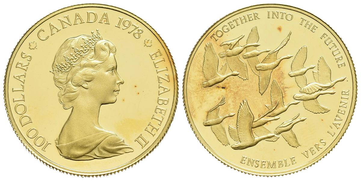CANADA. 100 Dollars. (Au. 16,91g/27mm). 1978. Gansos. (Km#122). PROOF.