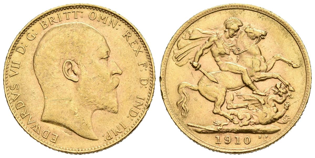 GRAN BRETAÑA. Soberano. (Au. 7,98g/22mm). 1910. Eduardo VII. (Km#805). MBC+.