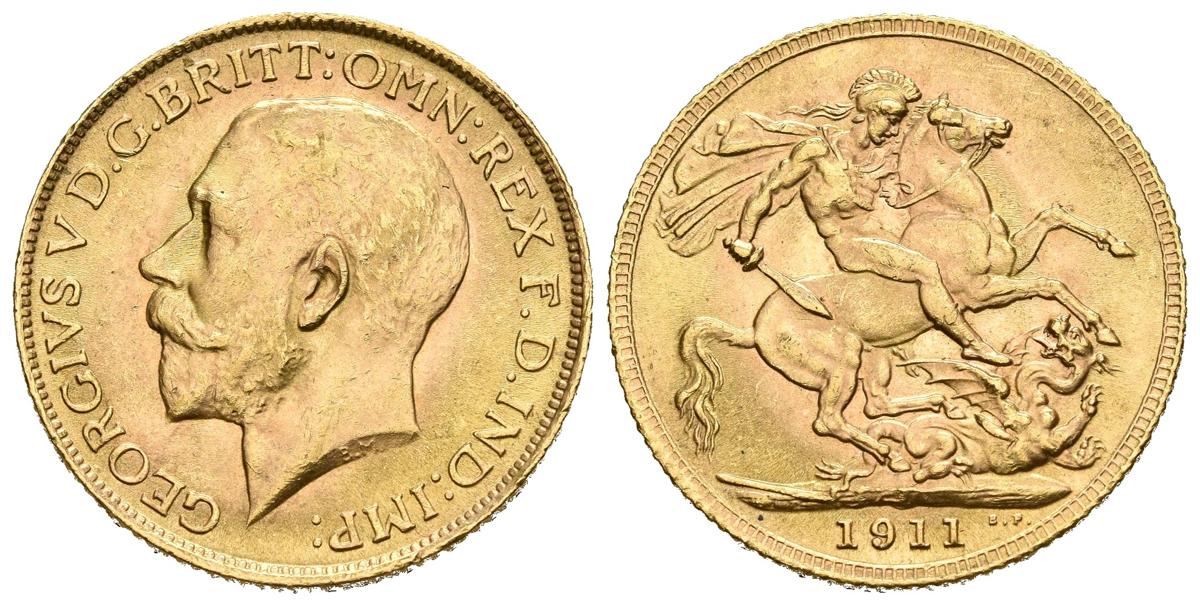 GRAN BRETAÑA. Soberano. (Au. 7,99g/22mm). 1911. Jorge V. (Km#820). MBC+.