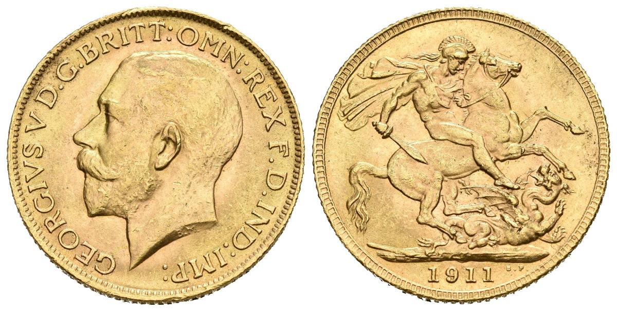 GRAN BRETAÑA. Soberano. (Au. 7,98g/22mm). 1911. Jorge V. (Km#820). EBC.
