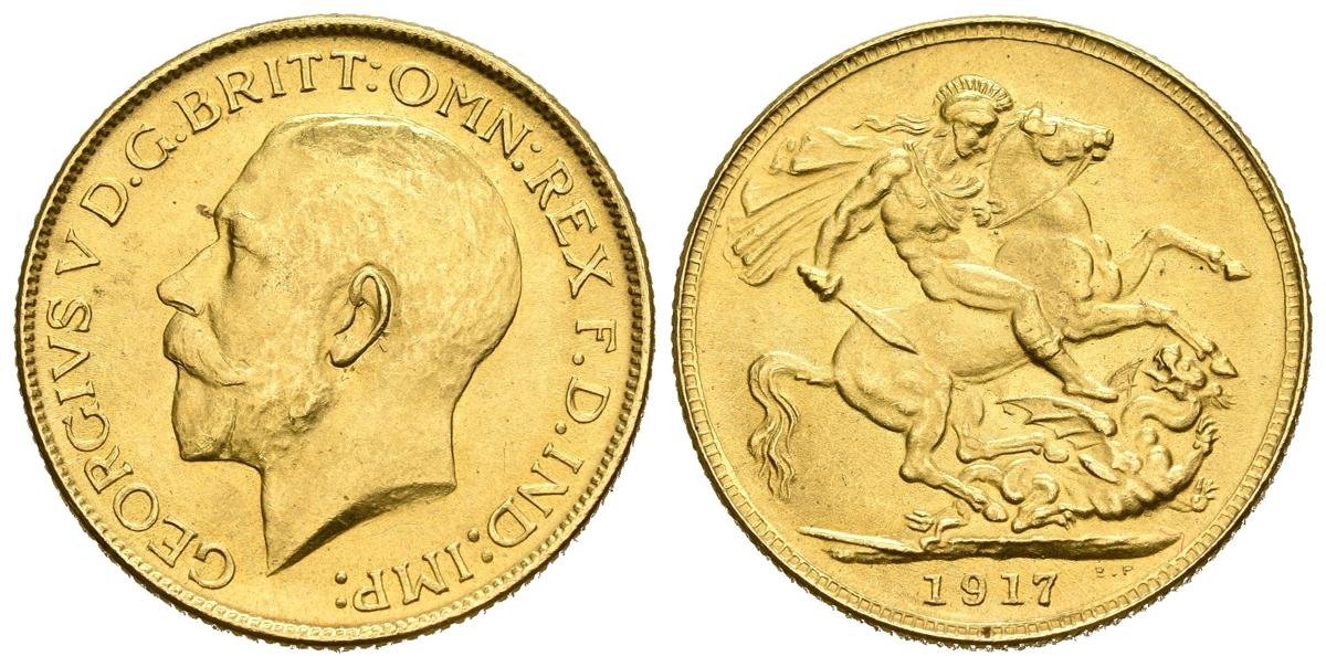 GRAN BRETAÑA. Soberano. (Au. 7,97g/22mm). 1917. Jorge V. (Km#820). EBC-. (Copia de joyería y acuñada en oro de 0,900).
