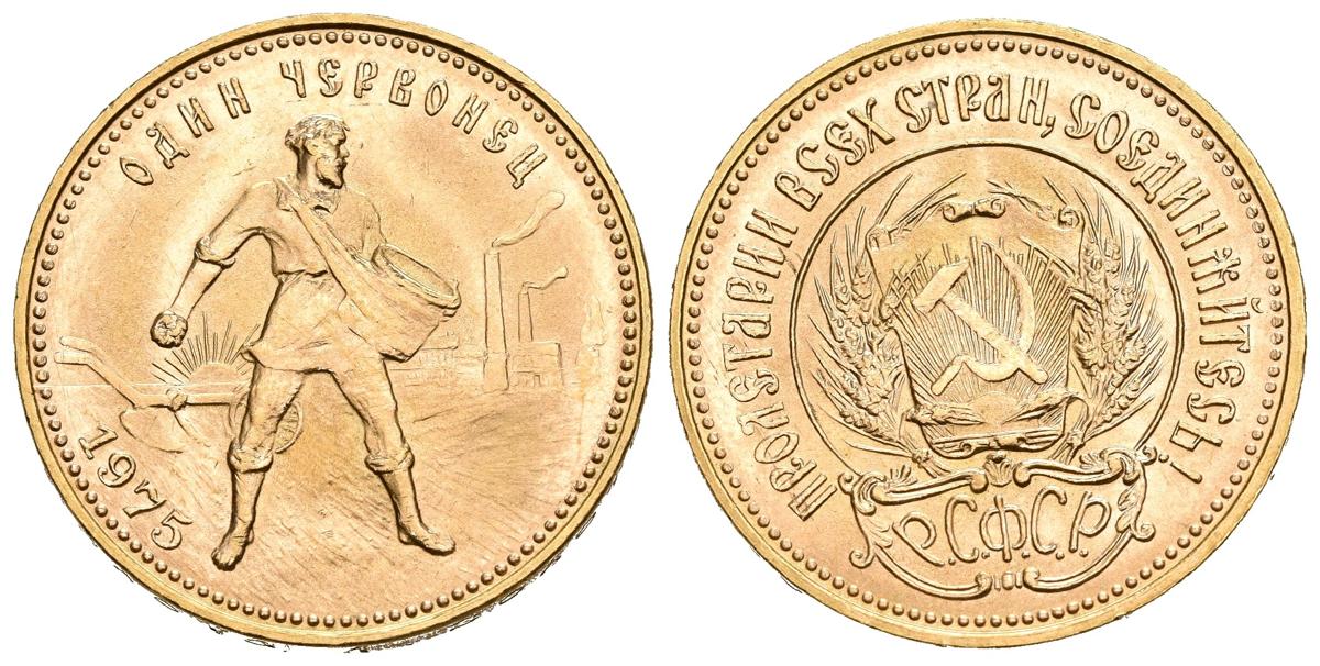 RUSIA (URSS). 10 Rublos. (Au. 8,57g/22mm). 1975. (Km#85a). EBC.