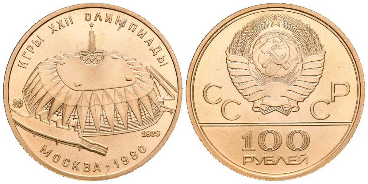 RUSIA (URSS). 100 Rublos. (Au. 17,17g/30mm). 1979. (Km#174). PROOF.