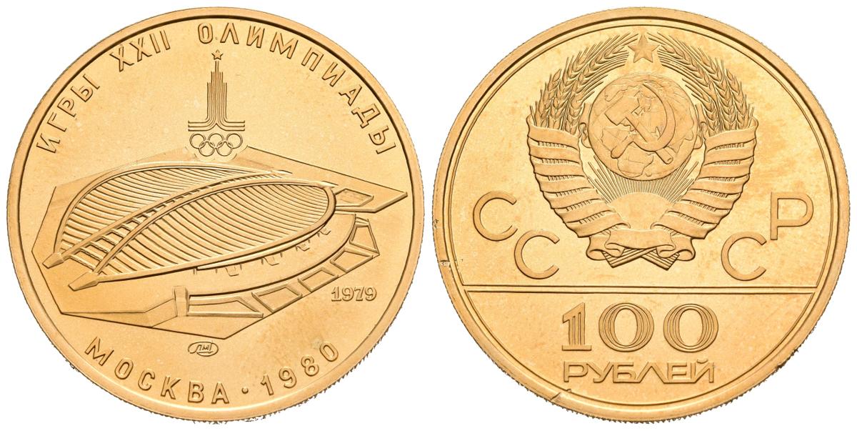 RUSIA (URSS). 100 Rublos. (Au. 17,37g/30mm). 1979. (Km#Y174). PROOF.