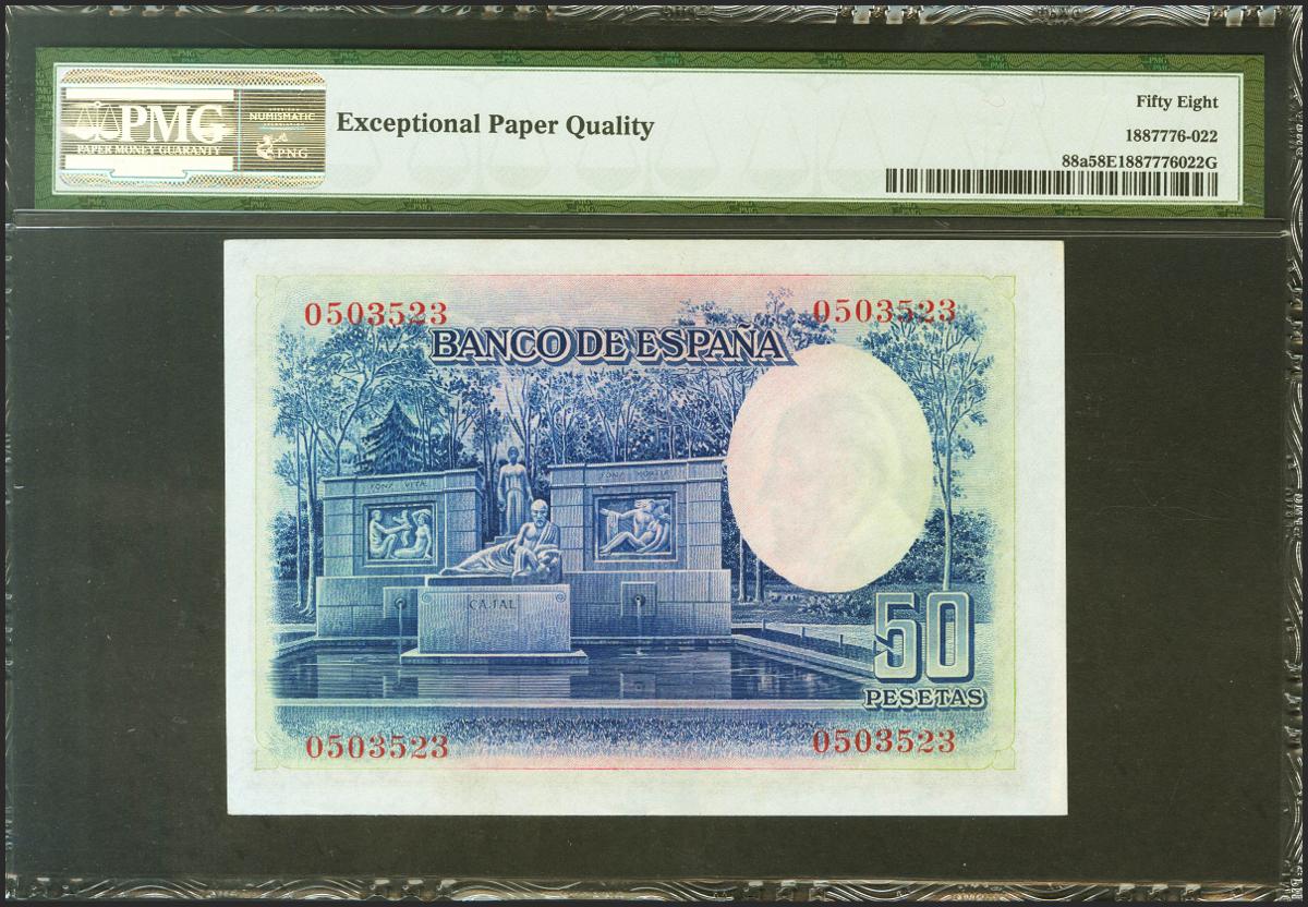50 Pesetas. 22 de Julio de 1935. Sin serie. (Edifil 2021: 366, Pick: 88a). Apresto original. EBC+++. Encapsulado PMG58EPQ.