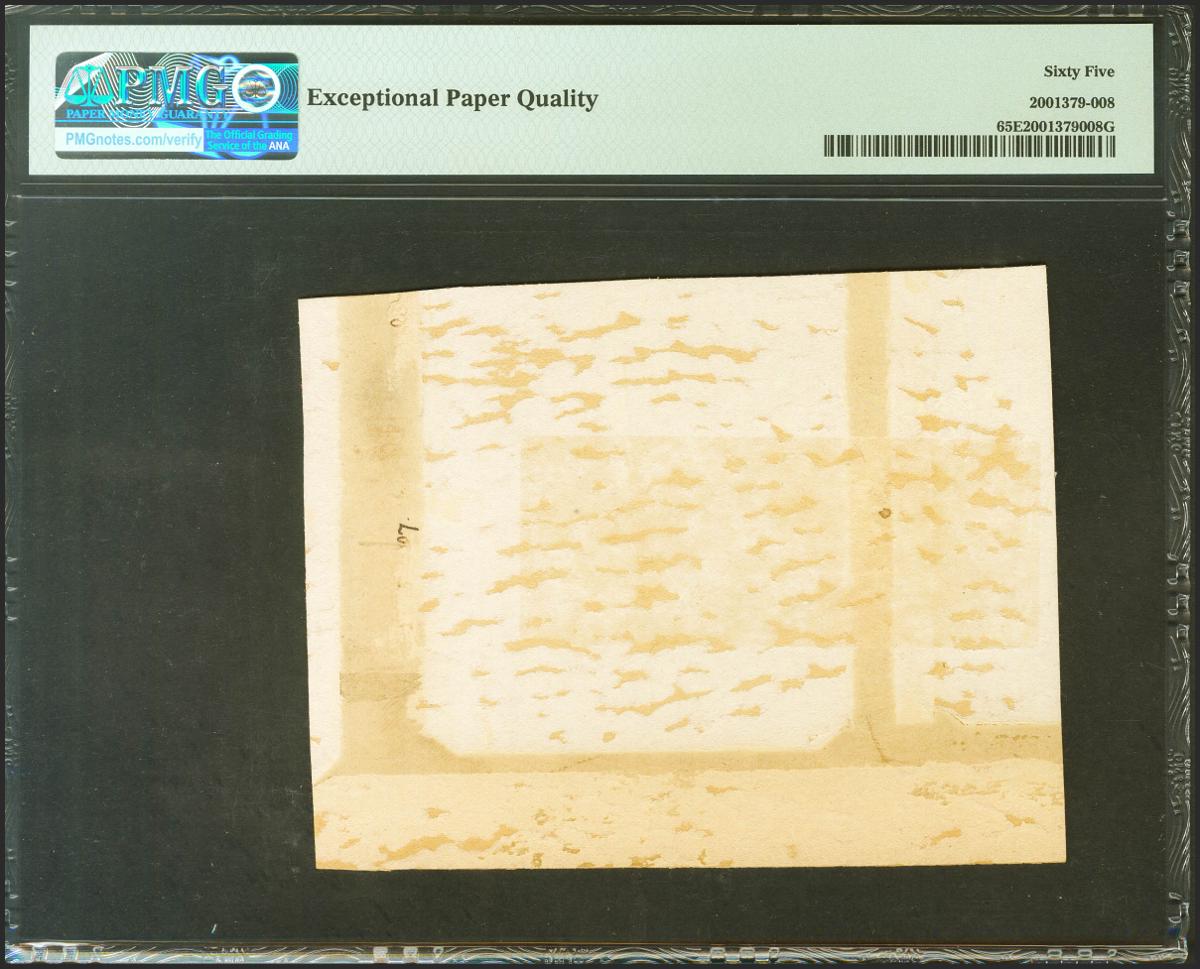 Prueba fotográfica de un billete no adoptado de 50 Pesetas similar al reverso del emitido el 15 de Julio de 1907 por Bradbury and Wilkinson, en Londres. Prueba muy interesante. SC. Encapsulado PMG65EPQ.