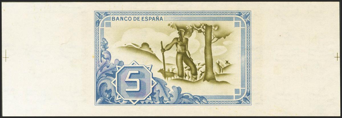 5 Pesetas. 1 de Enero de 1937. Sucursal de Bilbao, antefirma Caja de Ahorros Vizcaína. Sin serie y sin numeración, con ambas matrices. (Edifil 2021: 385b). SC-.