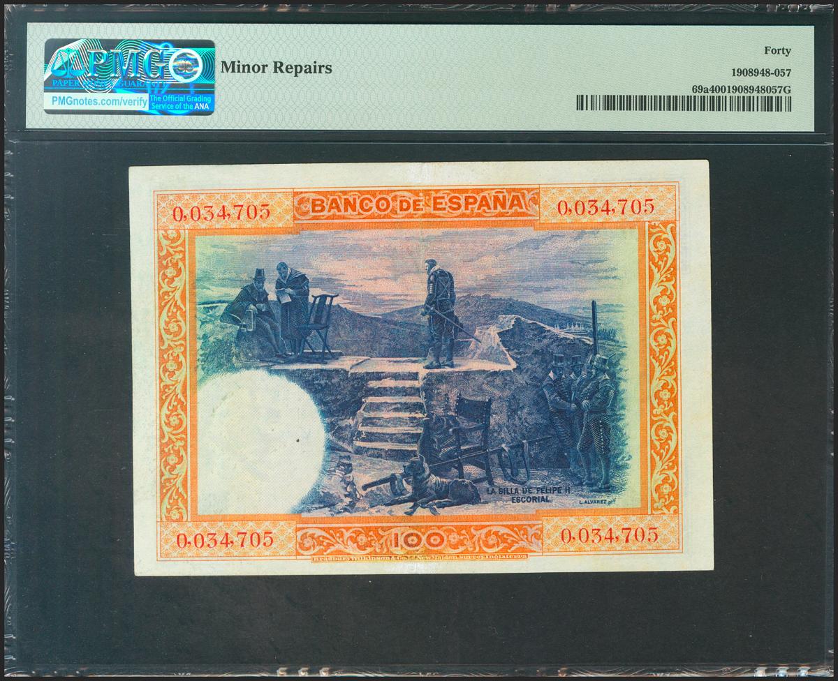 100 Pesetas. 1 de Julio de 1925. Sin serie. (Edifil 2021: 323, Pick: 69a). Inusual. EBC. Encapsulado PMG40.