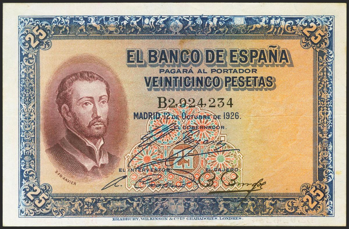 25 Pesetas. 12 de Octubre de 1926. Serie B. (Edifil 2021: 325a). MBC+.