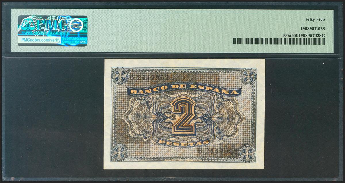 2 Pesetas. 12 de Octubre de 1937. Serie B. (Edifil 2021: 426a, Pick: 105a). EBC+. Encapsulado PMG55.