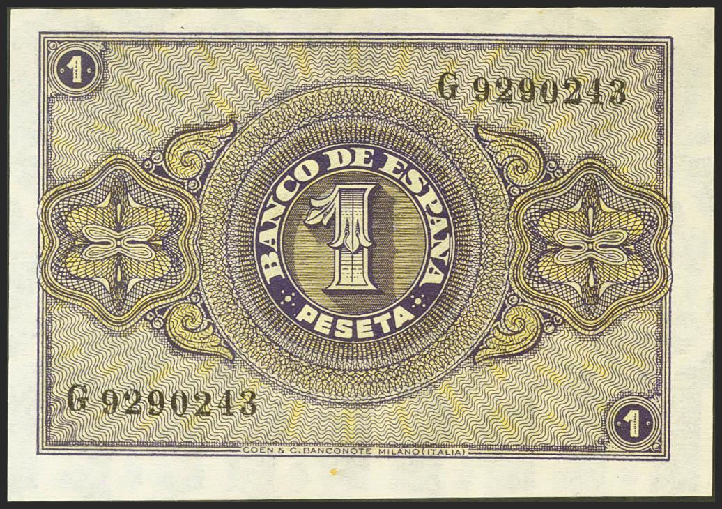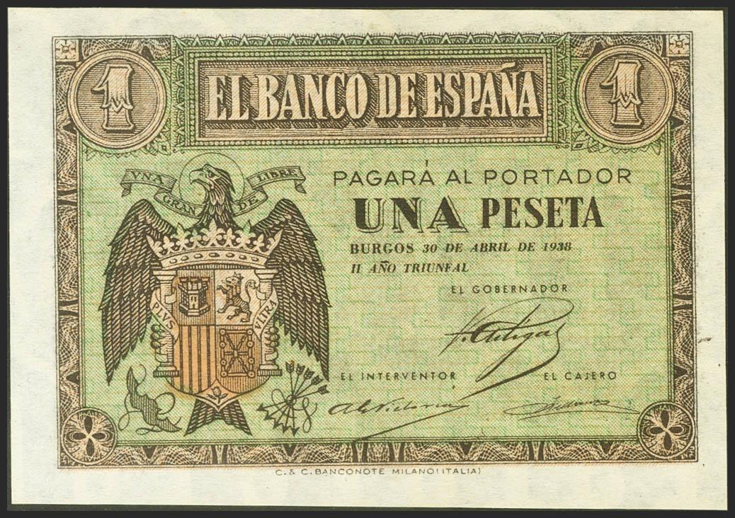 1 Peseta. 30 de Abril de 1938. Serie G. (Edifil 2021: 428a). Conserva todo su apresto original. SC.