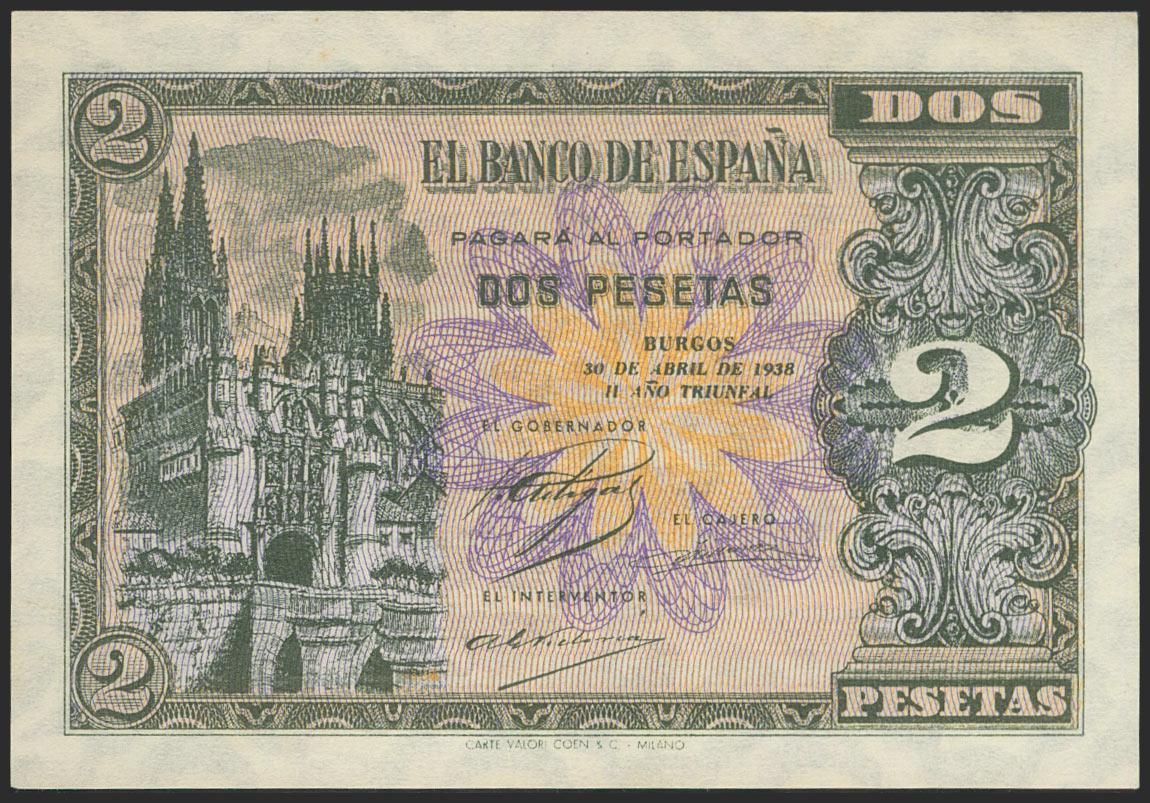 2 Pesetas. 30 de Abril de 1938. Serie C. (Edifil 2021: 429a). Apresto original. SC.