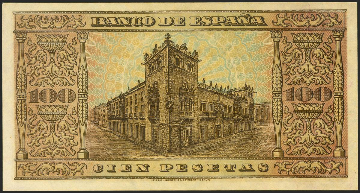 100 Pesetas. 20 de Mayo de 1938. Serie A. (Edifil 2021: 432). Muy raro en esta superlativa calidad, conserva todo su apresto original. SC.
