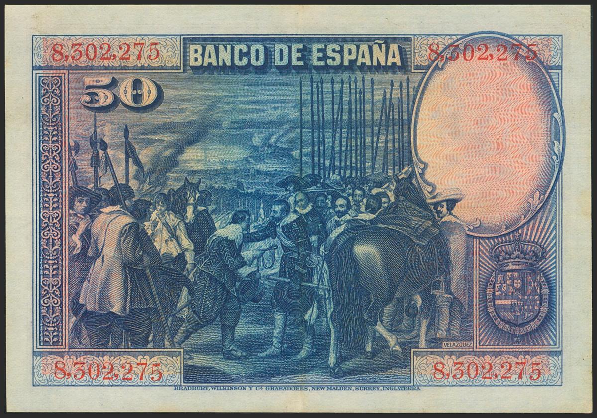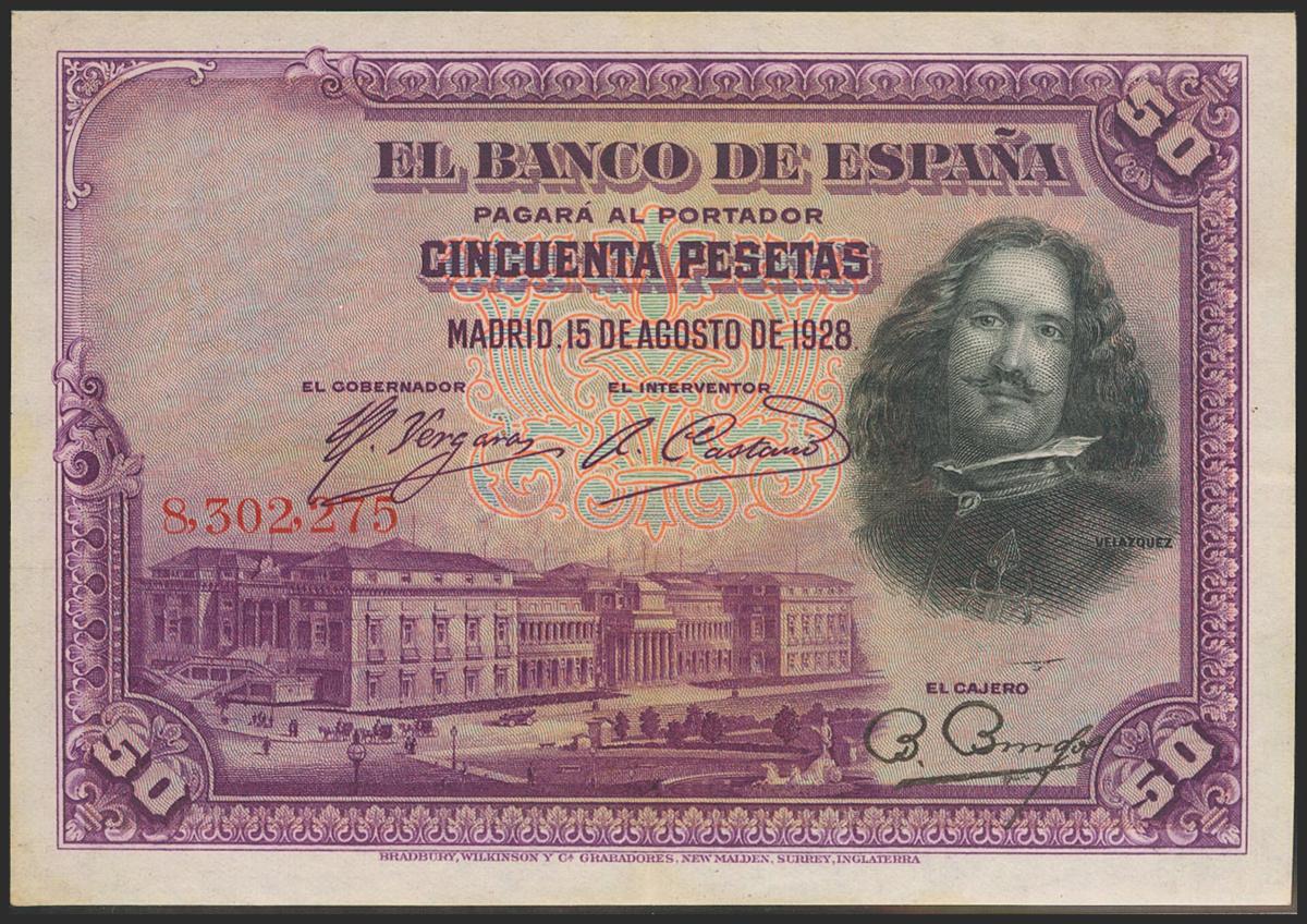 50 Pesetas. 15 de Agosto de 1928. Sin serie. (Edifil 2021: 329). Conserva gran parte del apresto original. EBC.