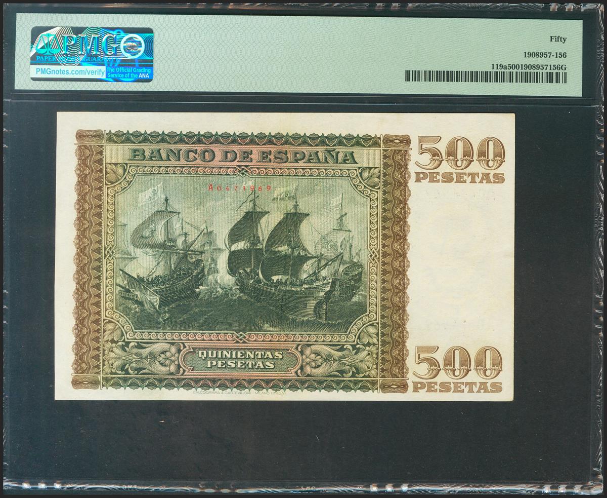 500 Pesetas. 9 de Enero de 1940. Serie A. (Edifil 2021: 439, Pick: 119a). Inusual en esta calidad. EBC+. Encapsulado PMG50.