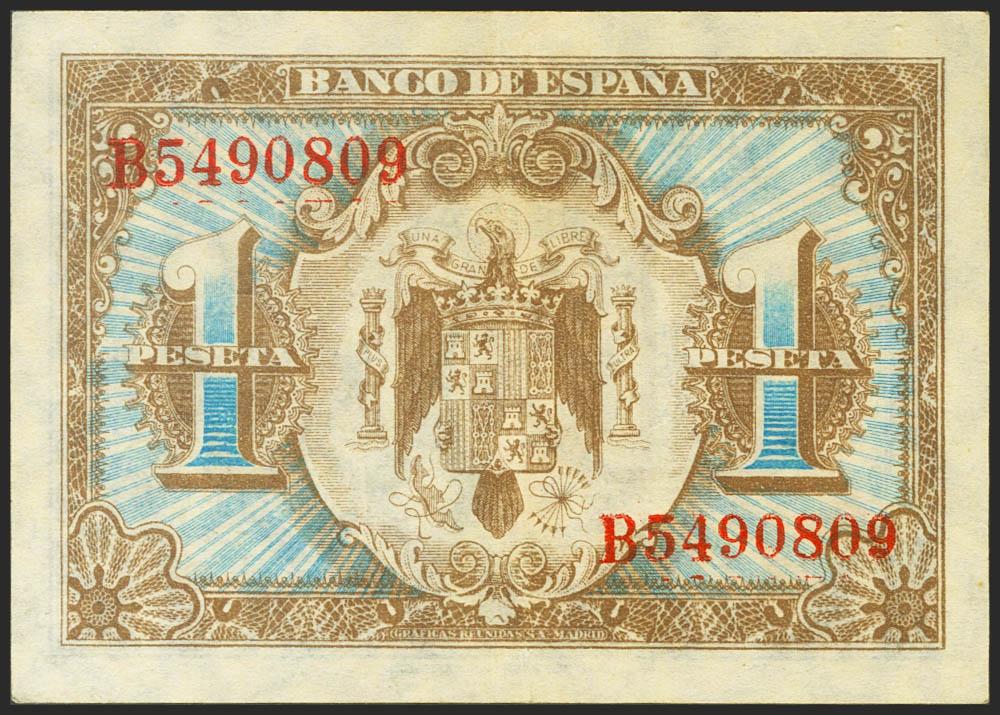 1 Peseta. 1 de Junio de 1940. Serie B. (Edifil 2021: 441a). Conserva parte de su apresto original. EBC+.