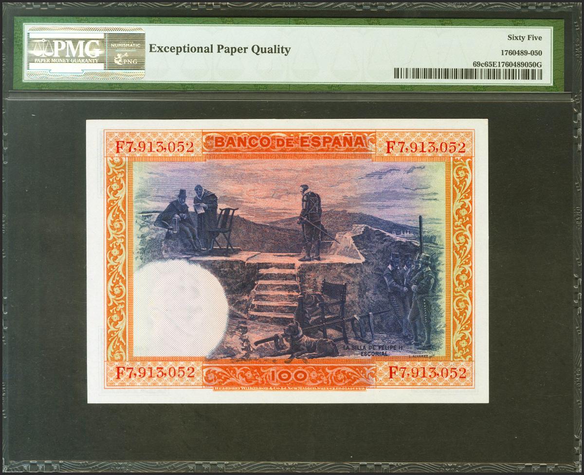 100 Pesetas. 1 de Julio de 1925. Serie F, última serie emitida. (Edifil 2021: 350, Pick: 69c). Apresto original. SC. Encapsulado PMG65EPQ.