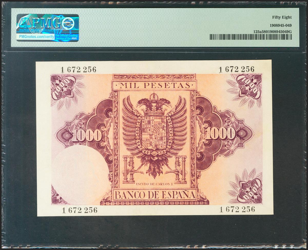 1000 Pesetas. 21 de Octubre de 1940. Sin serie. (Edifil 2021: 445, Pick: 125a). Muy raro en esta calidad. EBC++. Encapsulado PMG58.
