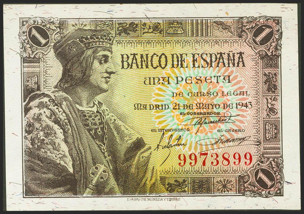 1 Peseta. 21 de Mayo de 1943. Sin serie. (Edifil 2021: 447). Apresto original. EBC++.